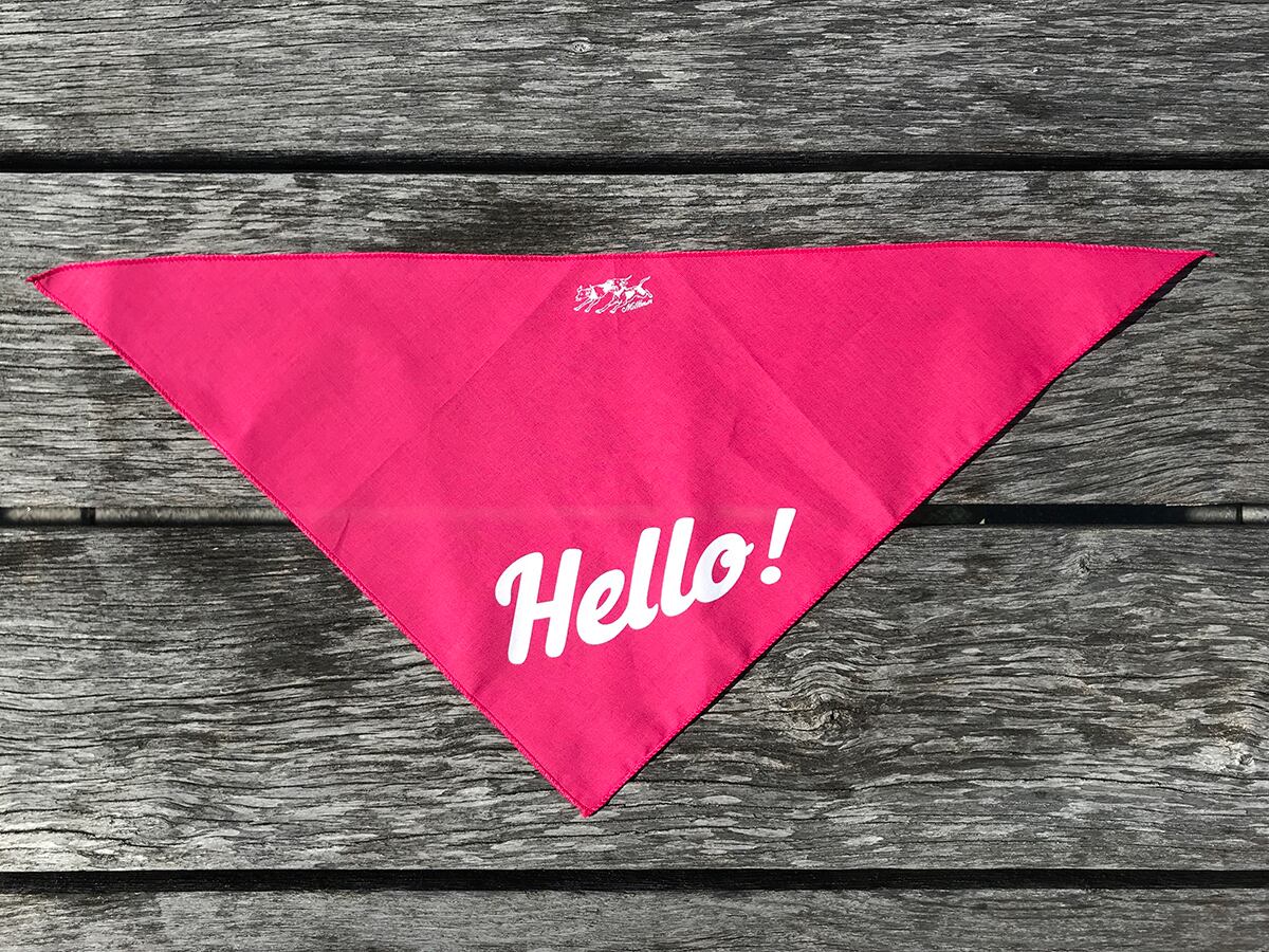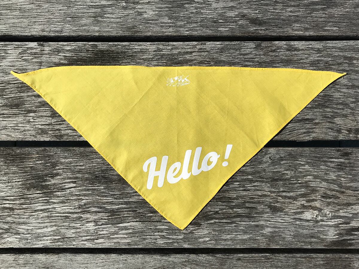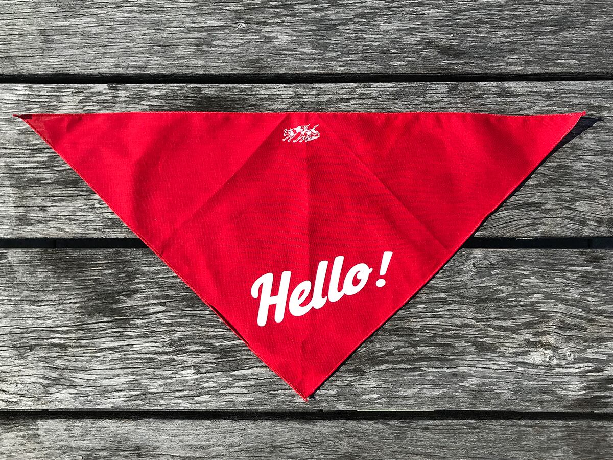 前回の生産で終了予定だったスタイルの三角形バージョンのHello!バンダナ、お陰様でたくさんのリクエストを頂きまして、再販させていただく運びとなりました!